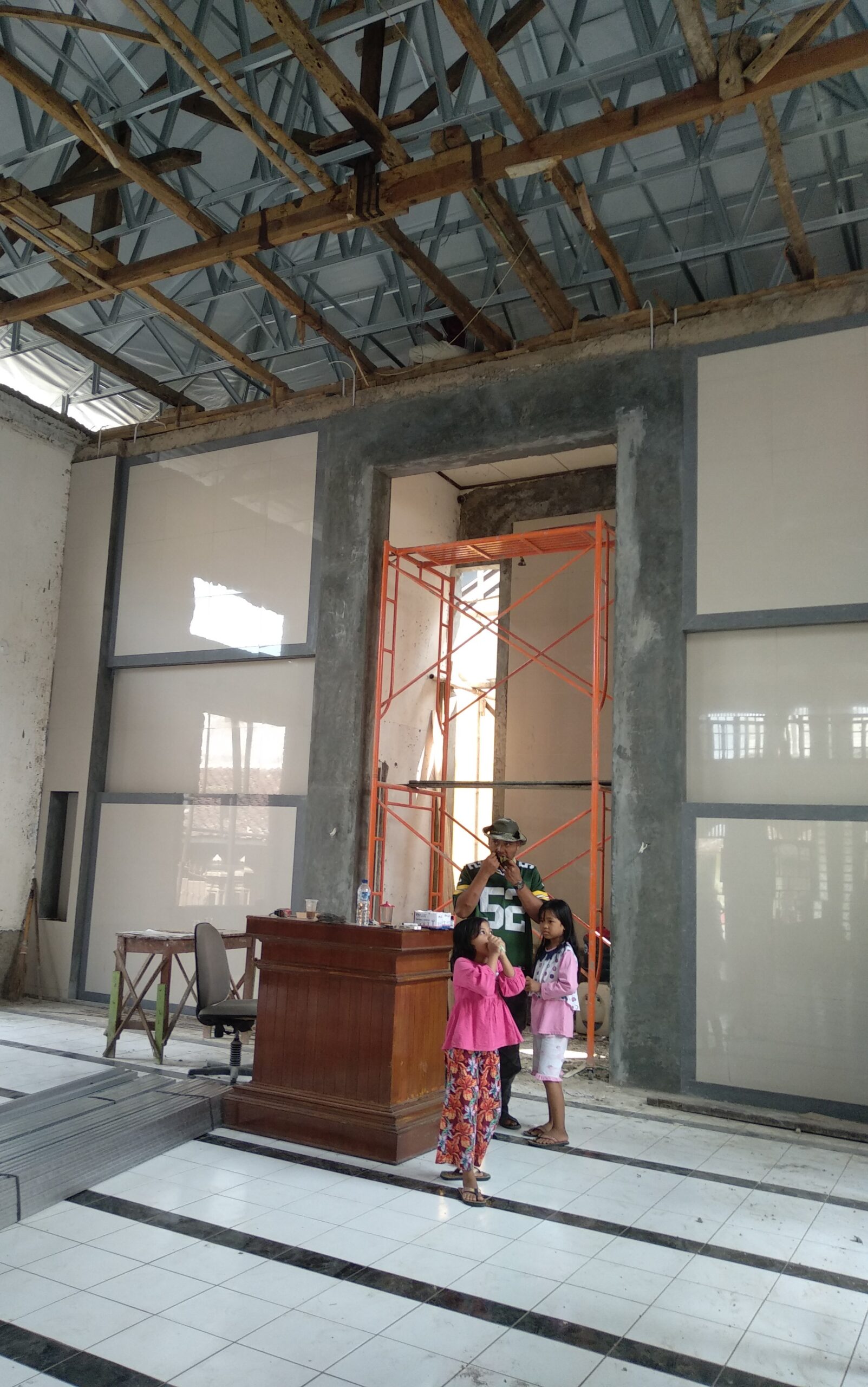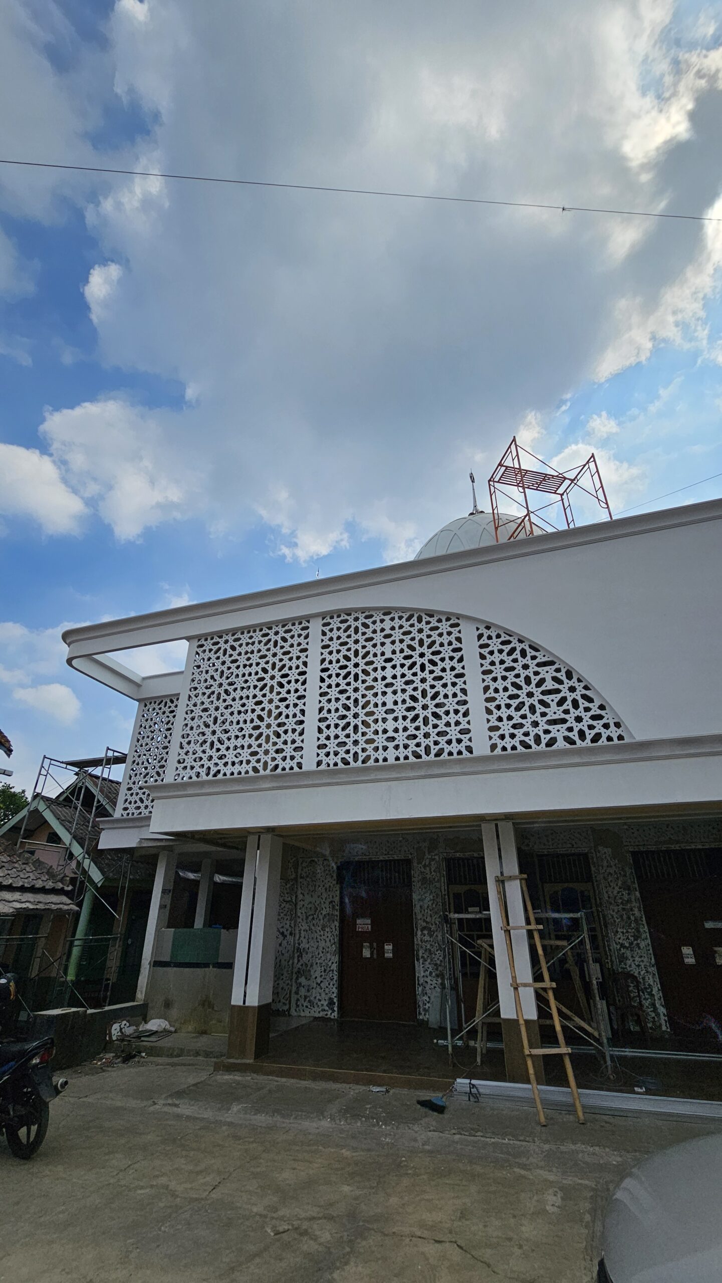 Kami mengerjakan program sosial CSR untuk renovasi masjid di desa, tanpa biaya dan tanpa keuntungan untuk jasa desain dan pengawasan berkala. Warga mengumpulkan sumbangan untuk biaya konstruksi dan mereka bekerja sama untuk mewujudkan desain kami.
